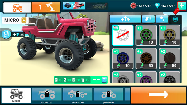 5、完成具有挑战性的越野赛车试验,升级你的车,更换更大的轮胎,提高你的速度和获得更多的抓地力