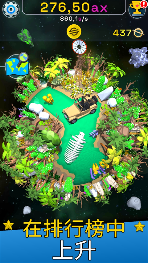 通过简单地点击地球,你将收集有价值的硬币,并一点一点地增加对在太空中飞来飞去的令人兴奋的物体的吸引力。如果你真的很聪明,你会用多根手指更有效地收集硬币,以尽快获得建造星球所需的资源。然而,星球进化模拟器不仅限于点击,还提供许多令人兴奋的升级、特殊助推器和独特的声望系统,以不可估量地加快你的进度,并帮助你探索宇宙的所有区域,感兴趣的小伙伴还在等什么,快快来下载体验吧!