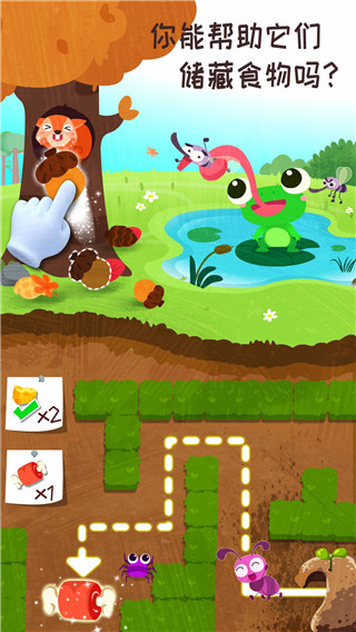 2、捕食、冬眠、搬家,超多益智小游戏;清新绘本画风,打造五彩缤纷的动物世界