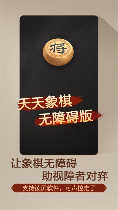 天天象棋无障碍版是天天象棋官方推出的一款让视障者实现与正常人线上对弈需求的版本,通过读屏和语音指令结合的方式来实现视障者高效流畅的对局体验,并希望通过科技为视障人群带来象棋的乐趣,丰富娱乐生活。同时支持微信QQ登录,所以玩家可以看到自己的微信QQ好友是否也在参与游戏,可以邀请好友一起对战。