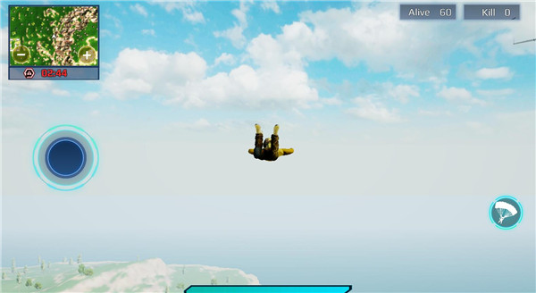 2、打开降落伞,降落地面,操作角色移动,狩猎开始