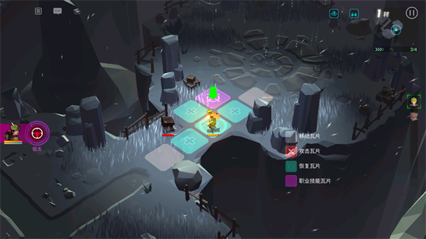 7、游戏中发现怪物,在攻击怪物时会出现移动瓦片、攻击瓦片、恢复瓦片和职业技能瓦片,玩家可以根据需求进行选择;