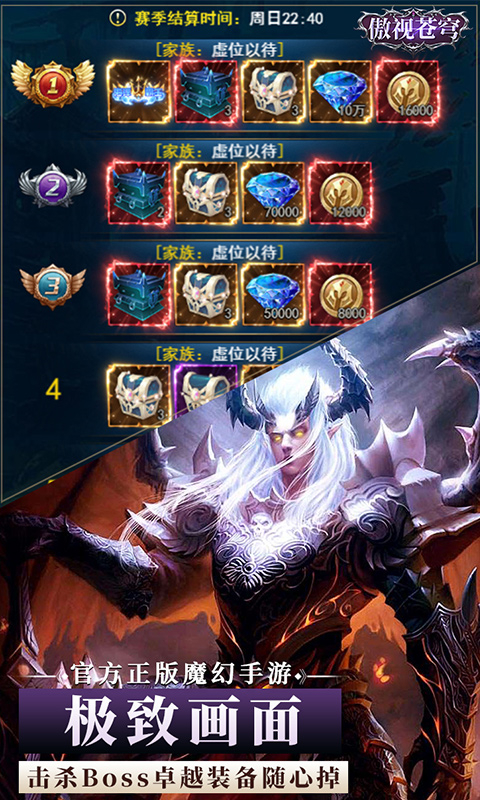傲视苍穹手游更是有着荣耀之巅、钻石魔窟等玩法,和女神的试炼、上古遗迹、神域要塞等特色游戏内容,让玩家尽情燃动自己的战盟之魂,开启专属自己的魔幻之旅!