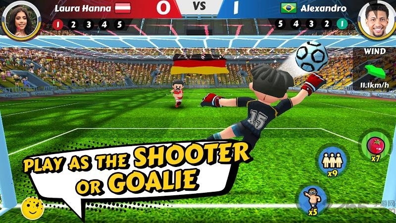 •简单,有趣和战略性的核心游戏玩法,每个1V1比赛将在踢球者和守门员之间交替进行。