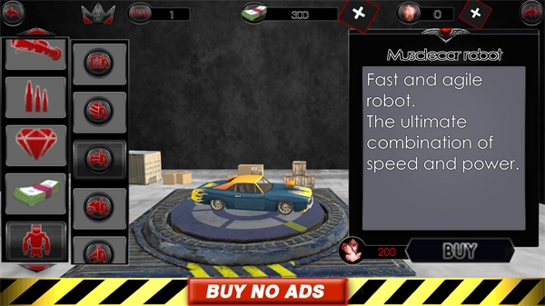 4、在商店能购买各种不同形态的机甲,也可以购买杀伤力不同的武器。