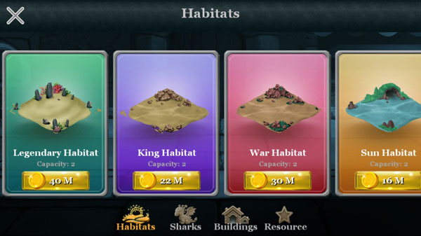 4、逐渐解锁更多水下凶猛野兽:灰鲭鲨、锤头鲨、虎鲨和无敌的大白鲨!