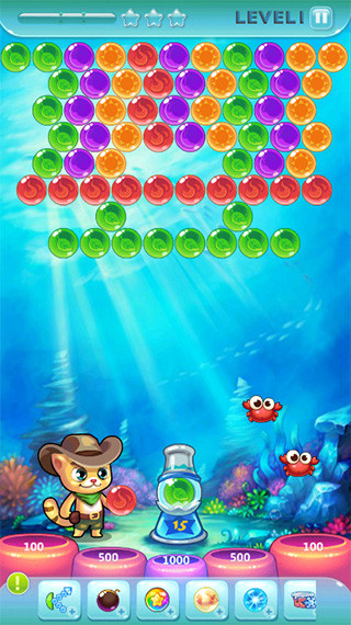 开心泡泡猫最新版是一款玩法简单相当有趣的泡泡龙消除类游戏,采用的是非常精美的卡通画风,其画面有着亮丽的色彩,非常鲜艳,还有各种丰富多彩的地图场景和可爱Q萌的喵咪角色,为玩家塑造了一个梦幻般的游戏世界,带给玩家极为舒适的游戏体验。在玩法上本作采用的经典的泡泡龙消除玩法,玩家需要利用大炮将对应颜色的泡泡发射出去,通过消除相同颜色的泡泡可以获得积分,关卡当中的泡泡全部消除后即可获得游戏的胜利,同时游戏当中还有功能不同各种道具,合理的使用能够帮你过关变更加顺畅。此外开心泡泡猫当中内关卡众多,有多达100+的趣味泡泡关卡等你挑战,不同的关卡还会变换不同景色的背景,游戏体验超棒,能够让大家在游玩的过程中获得视觉和心理双重享受。