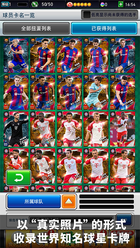 1、以真实球员照片的形式,收集世界知名球星卡牌