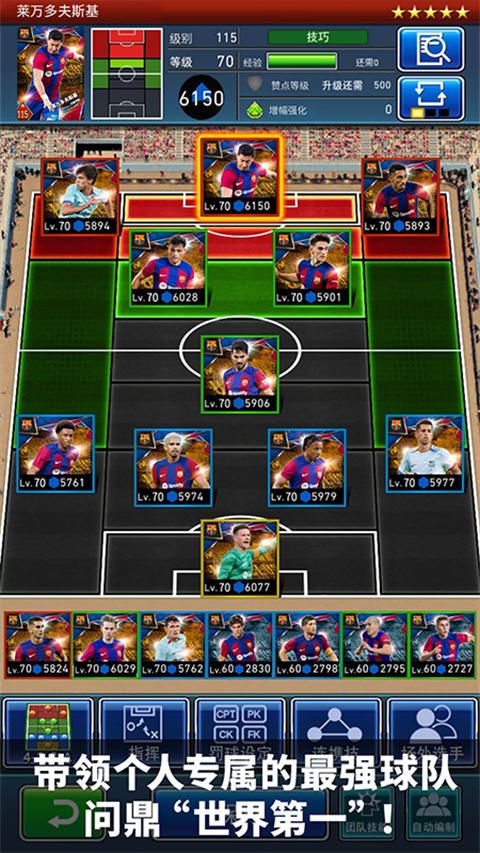 5、然后抽到重复位置的五星球员就按在板凳上,一般来说收集到十五个五星的,等级升满就成功七万了