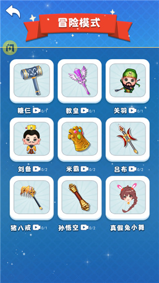 1、游戏中提供了冒险模式、自创英雄模式,玩家既可以挑战BOSS关卡;也可以创造专属的皮肤。
