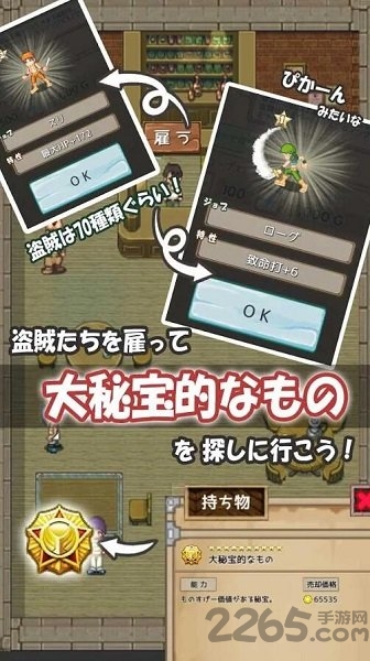 遗产代价作者的最新力作!某天,主人公和他的盗贼伙伴们balabalabala(中略)为了获得大秘宝,像素风放置RPG手游,主人公决定踏上冒险之旅,冒险者队由天才教授、勇敢的探险家和一位机智的美女3人组成,他们正在寻找最伟大的古代神器。