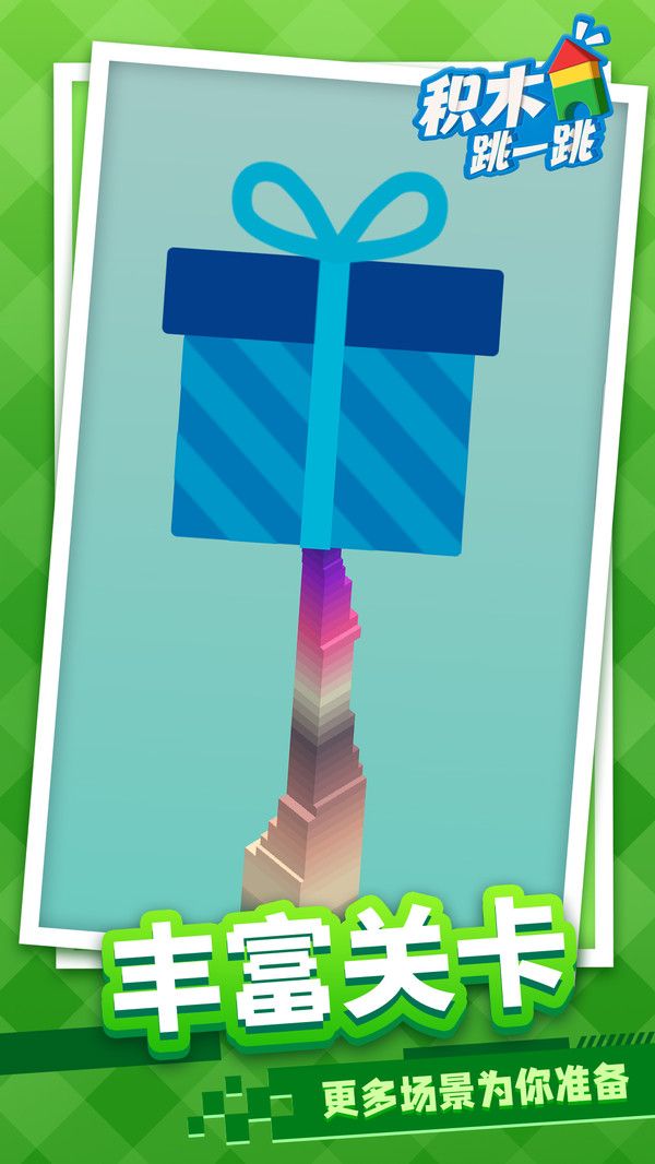 积木跳一跳是一款最近非常火爆的休闲益智手游,玩家们可以在积木跳一跳中体验到新版本上线的模式玩法。游戏整体弥漫着清新自然的画风,操作也不难,完成更多级别的任务,清新明了的卡通画风,让你可以摘得丰厚礼包,玩家在游戏当中会遇到许多有趣的关卡内容,一直畅玩下去都十分过瘾啦,随着积木堆叠的越来越高,玩家们可以邀请好友一起加入到积木跳一跳当中。