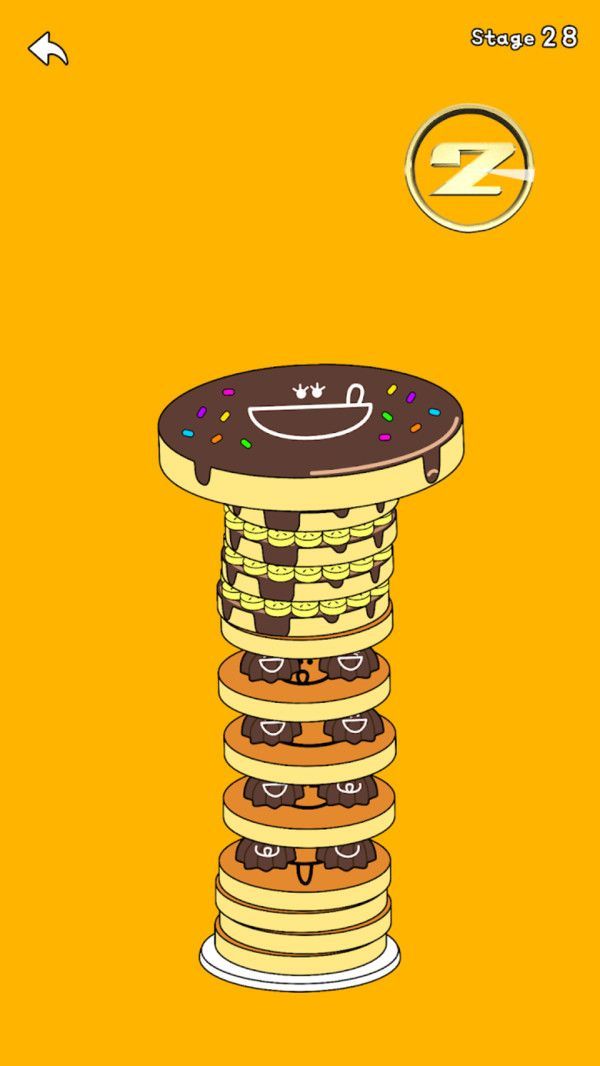 1、采用清爽的卡通风格画面,可爱的披萨松饼堆叠玩法,锻炼玩家的眼力和手速;
