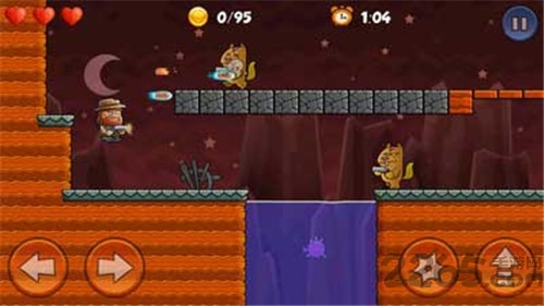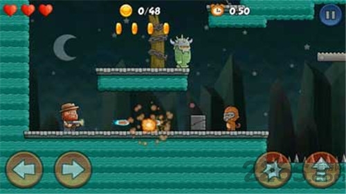 2、简单的触屏控制:左下角控制角色移动,右下角控制跳跃与攻击敌人。