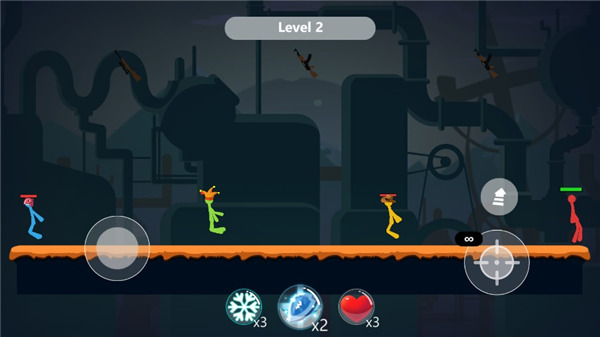 1、卡通可爱的游戏画风,十分经典的火柴人形象,给玩家带来畅快体验。