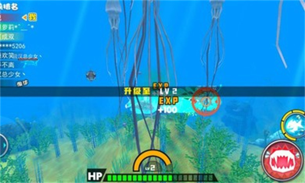 2、化身鲨鱼在陌生的海洋里玩游戏,以各种鱼类为食!成为越来越强大的海洋动物!