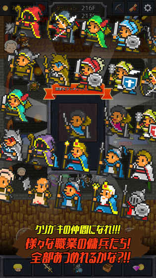 游戏通关点击来攻击怪物,也可以雇佣佣兵来帮助主人工攻击,随着地牢深入,也会遇到更强大的敌人。游戏角色可以不断强化,也有丰富的佣兵和装备收集。