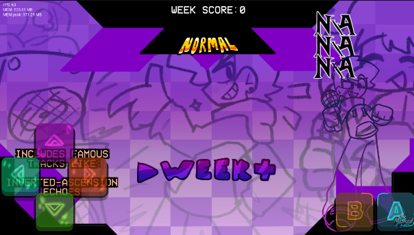 TheBoyfriend-一个有着天蓝色头发的白皮肤男孩。他一直在争夺女友的吻但她的父亲不允许。男朋友必须首先能够击败他。使用WASD或箭头键您将需要尽可能地匹配每个箭头。来完成音乐的连击;