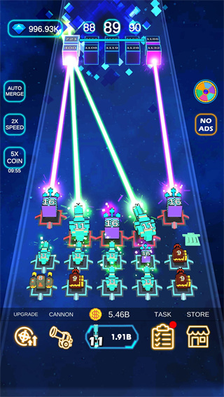 3、合并以升级大炮并在战术上定位,以防御越来越强大的魔方浪潮和致命的boss
