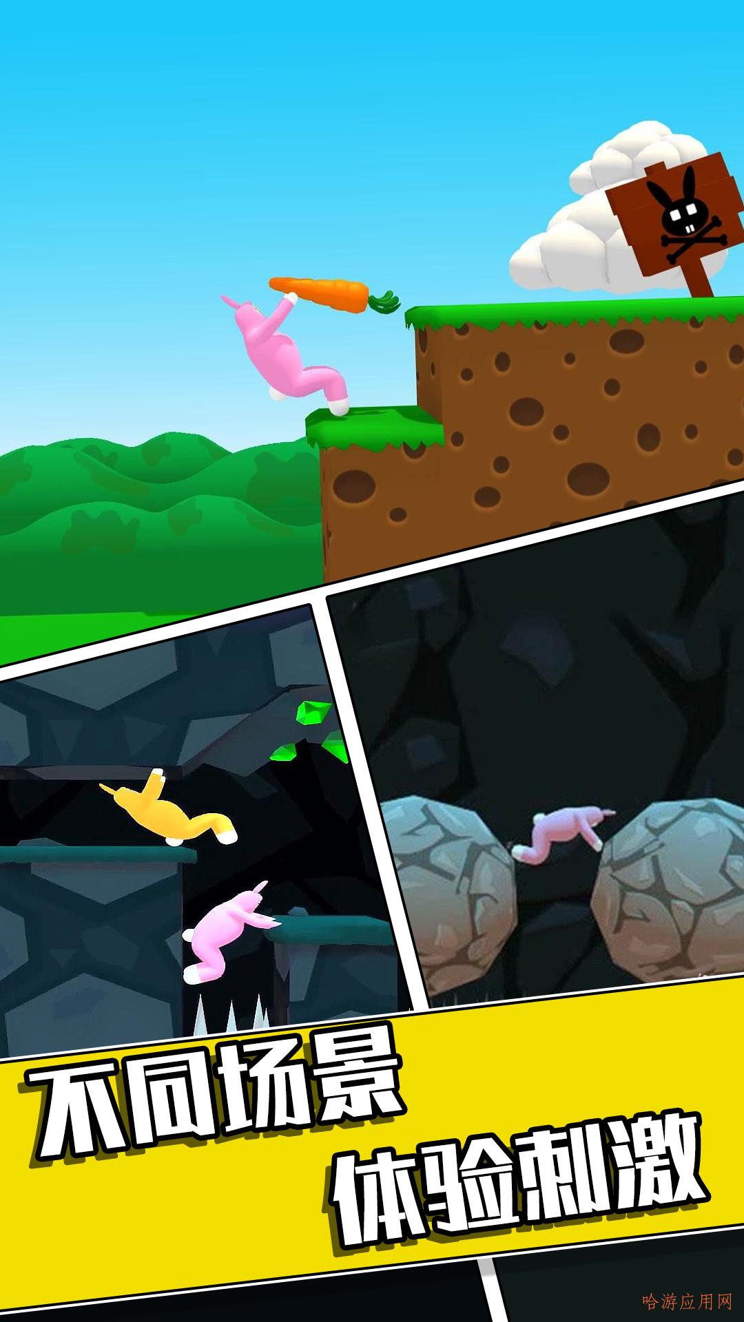 2、欢乐十足的指尖竞赛,游戏中的互动充满激情,控制你的兔子人不停的闯关