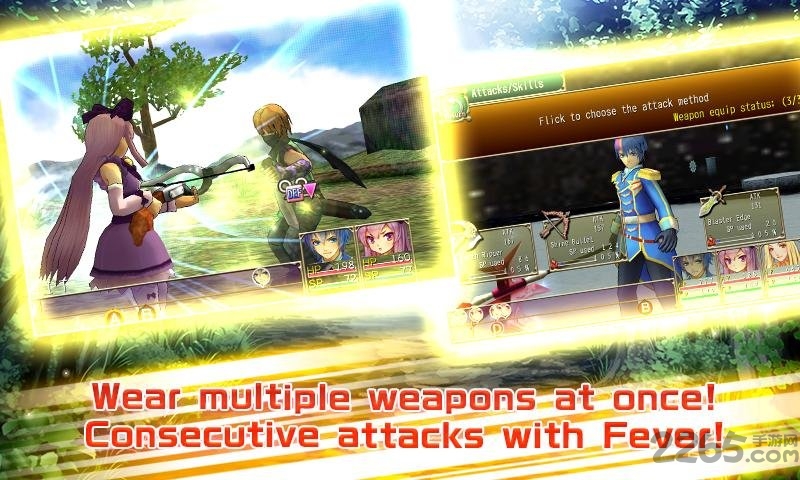 在战斗中装备两种武器,向敌人讨伐根据武器的不同,能够使用的技能能发挥出更大的效果。在战斗中,没用使用的武器会跟着攻击的增加而增加储存槽。在适当的时机发动大技能,打到敌人。