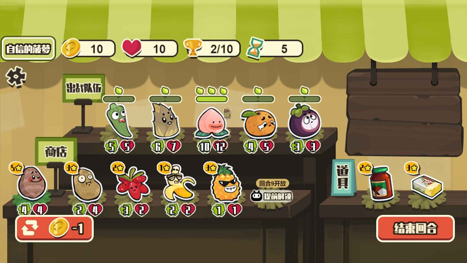 1、你可以从一群可爱的蔬菜水果中组建一个团队,他们将为你而战。