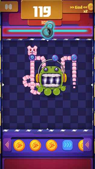 游戏整体设计的时候.我尽量的保留了老版贪食蛇的玩法..基本玩法是控制角色移动,吃到更多食物,变得越来越长在吃方面我还是比较讲究的.所以把贪食蛇的食物改成了各种各样的道具.一共设计了32种. 这些道具需要通过游戏中收集到的金币依次解锁它们(当然.如果你愿意的话.看看我内置的广告获得金币会非常简单~ 再假如你是有钱人的话就更好办了