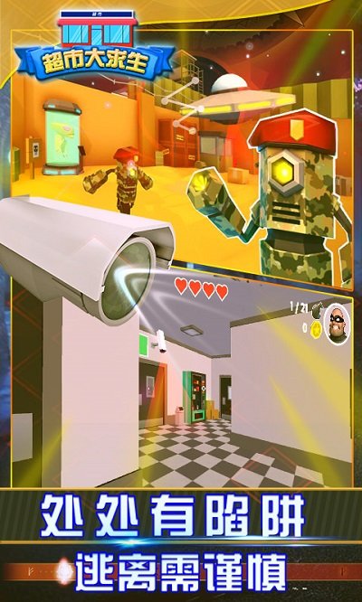 3、游戏采用了3D的动画画面显示,在这个危险的超市中,处处都有陷阱,马上逃离才对。