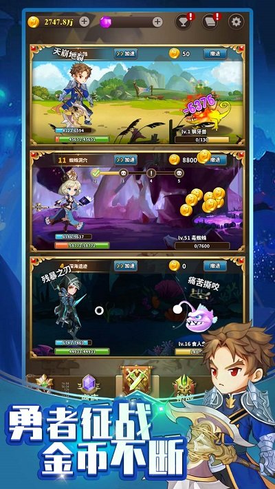 勇者远征游戏是一款精彩刺激的卡通冒险游戏,游戏采用了卡通的画风为主,在游戏中各种各样的精彩战斗等你来体验,各种不同的角色等你来收集养成,更有海量任务等你来完成,感兴趣的朋友快来下载看看吧!