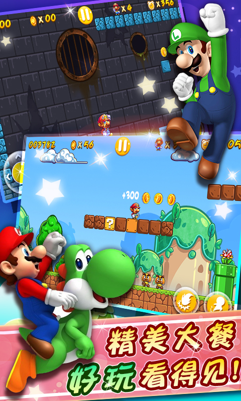 公主又被魔王绑架啦,马里奥再次踏上征程!20年不朽经典再现,带你重温儿时梦想;全新3D技术打造,如果你是的80或者90后,当然更加欢迎我们的00后和我们回味经典。这应该是你小时候热爱的游戏,我们都曾经为它疯狂过!对,它就是超级玛丽!让我们一起重拾儿时欢乐。为你带来视觉盛宴;注重细节的关卡设计,精益求精的音乐效果,铸就2018最火手游。这一次马里奥是否能顺利救出公主呢?记得小时候,为了得到它,可以几天不吃不喝,为了通过它,可以几天几夜不睡,它就是我们怀念的经典马里奥!