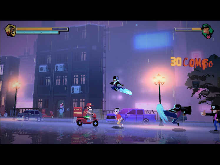 4.游戏目前提供单人和双人本地合作通关模式,也有标准到碰瓷多种难度选择。好上手但不简单,也许一不留神就会被路边流氓打死,一个人打不过就喊人吧。