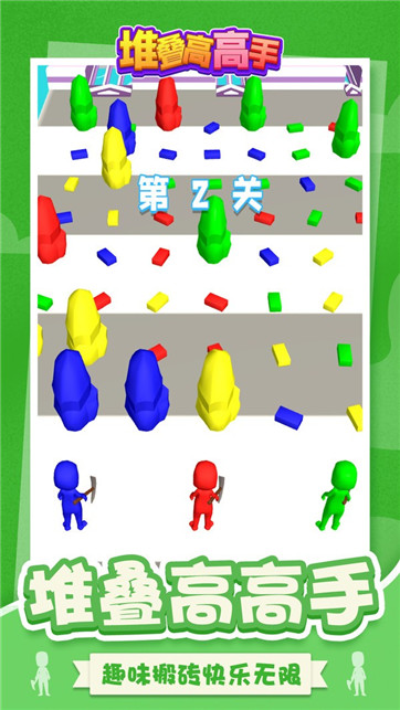 1.这是一款休闲解压游戏。玩家需要控制角色不断收集与自己颜色相同的砖块。2.然后用砖块快速搭建楼梯,选择下一个平台和合适的车辆穿过障碍物到达终点;