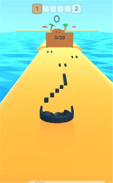 1、游戏的操作非常简单,控制U形凹槽连续前进,收集石头来清理海滩。
