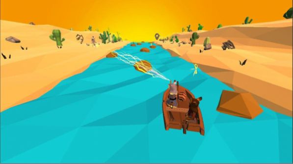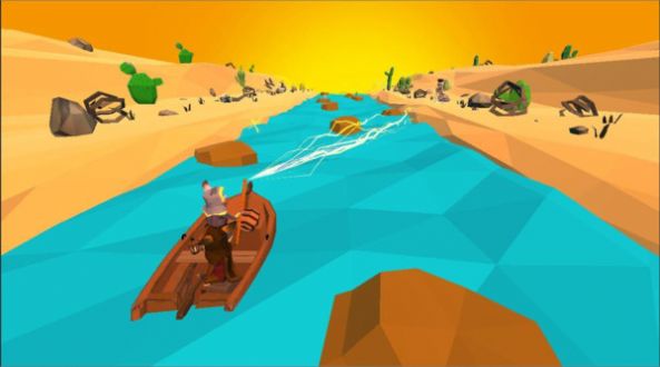2、开启水上木筏旅行,控制着小船沿着河流漂流,灵活滑动躲避开沿途的障碍物;