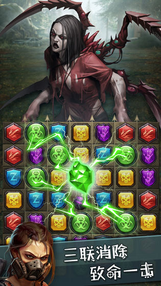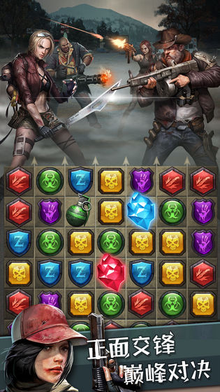 独战僵尸免费版是一款以僵尸为题材的休闲消除类手游,我们的玩家不仅可以招募不同的英雄来帮助你一起对抗僵尸,同时你还可以通过消除的方式来指挥英雄战斗,将僵尸全部消灭。