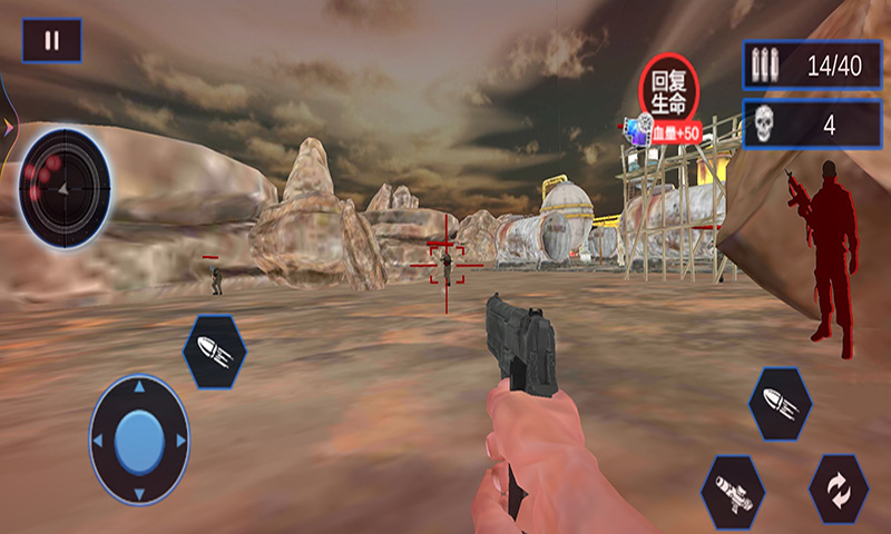 1、解压刺激的射击游戏,整体上的难度不是很高十分适合去锻炼。2、随时随地都是能遇见敌人出现,及时的把自己瞄准器移到敌人。