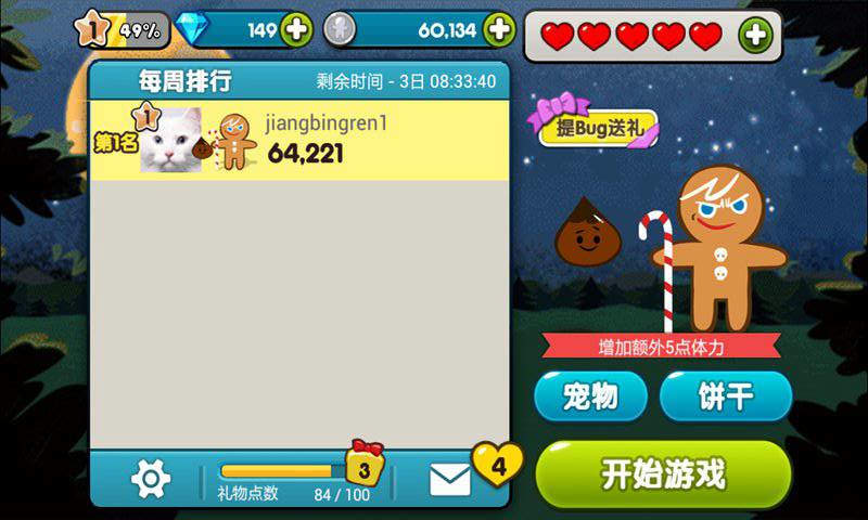 3、在跑酷期间玩家可以不断在奔跑过程中积攒道具获得生命值从而一直跑下去,让姜饼人逃离被吃掉的命运。