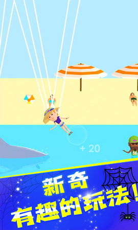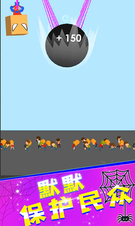 1、卡通3D游戏画面方式,独特的蜘蛛丝的拯救人们的玩法。