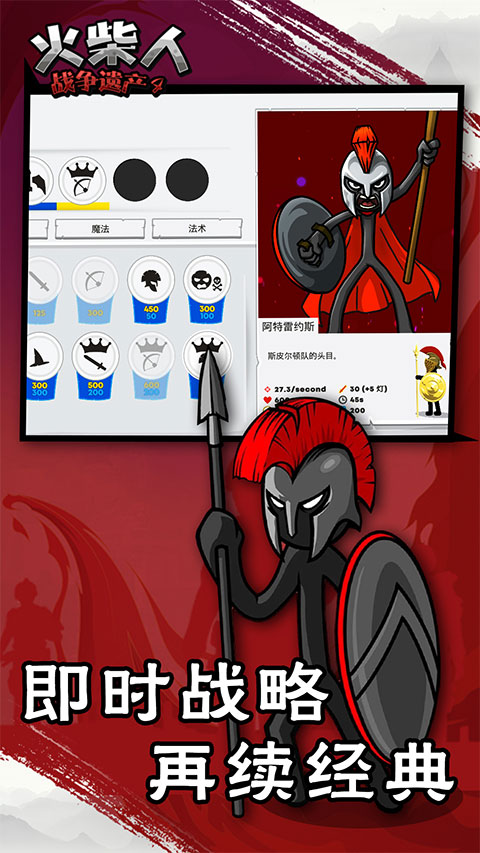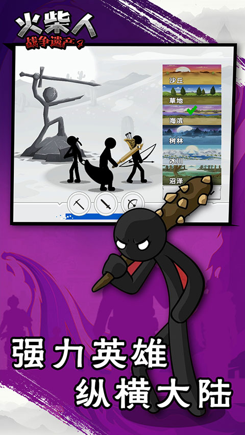 1、和火柴人展开终极对决的策略类游戏,组建一支战斗力超强的火柴人军团。