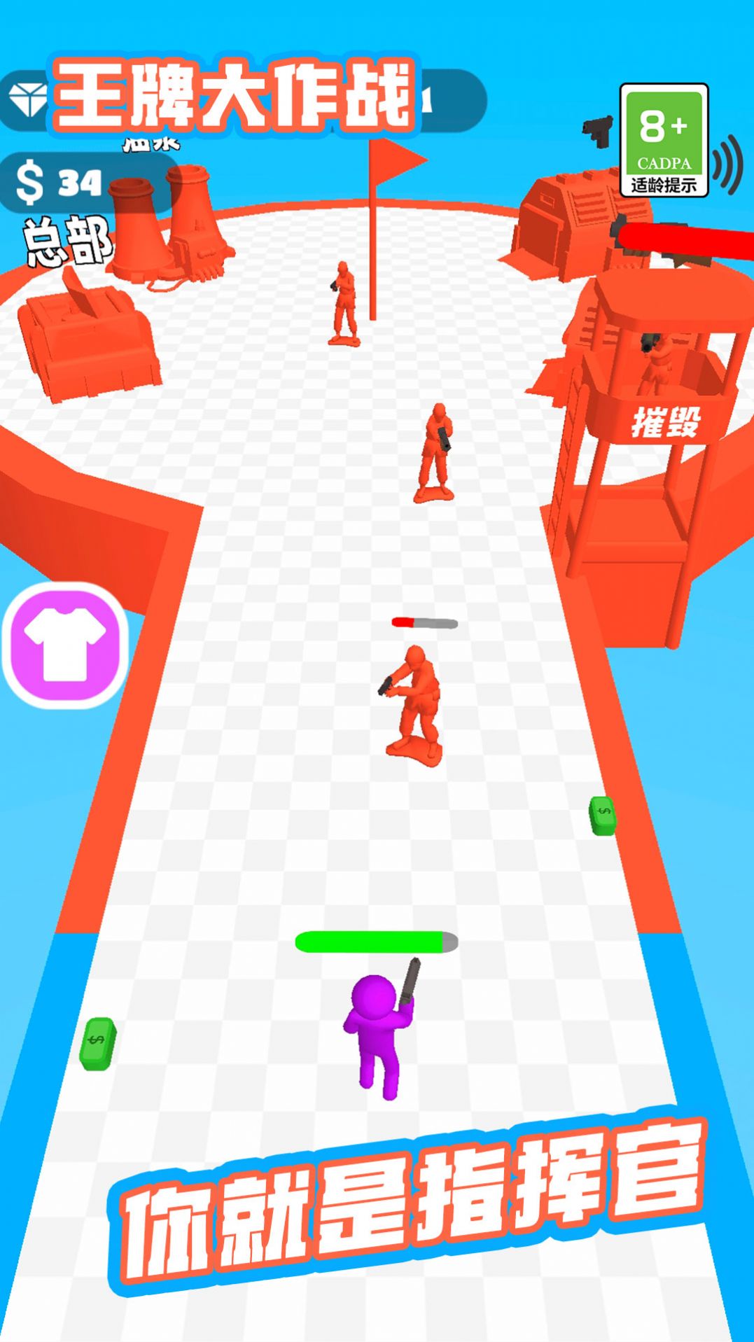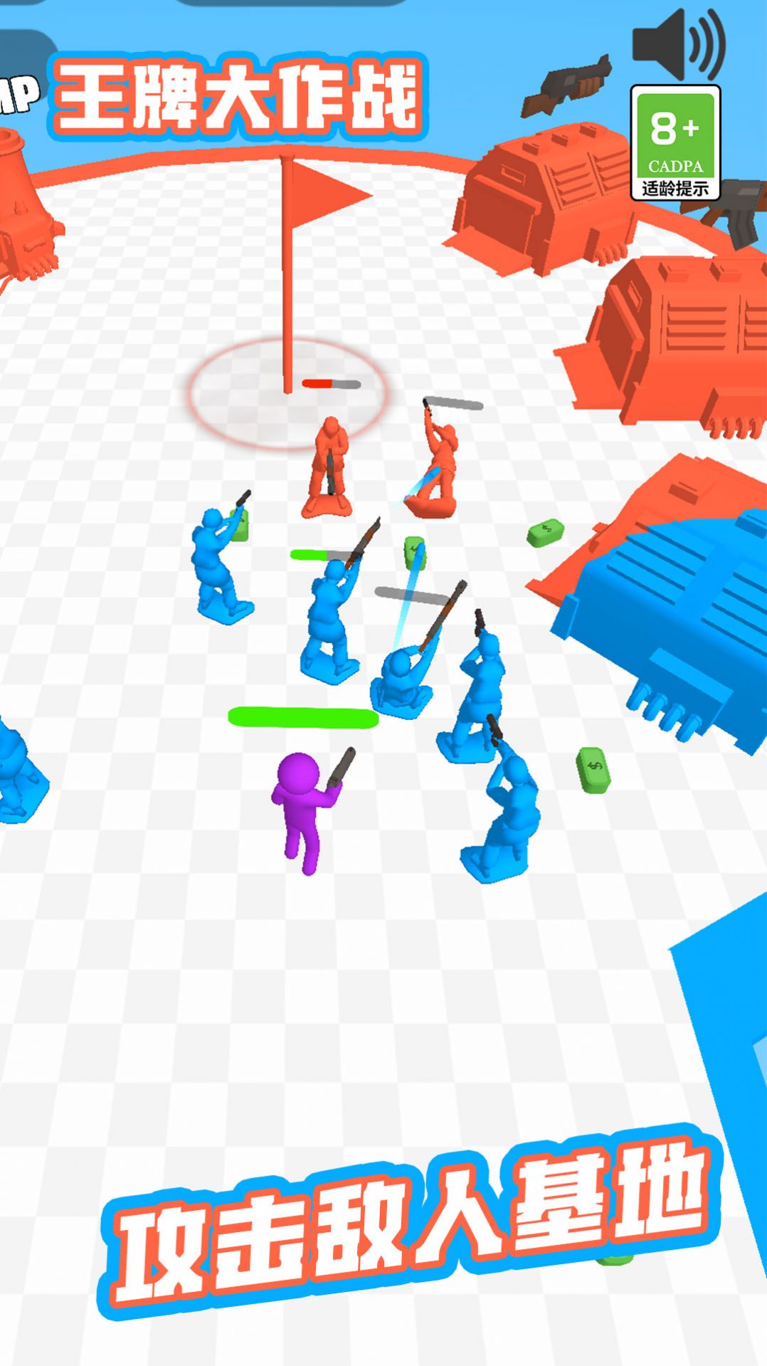 王牌大作战玩具兵人是一款刺激爽快的休闲闯关小游戏,玩家需要控制小人展开激烈的射击闯关挑战使用不同武器打败敌人快速收集各类道具获得更好的体验,喜欢的小伙伴快来一起下载体验吧。