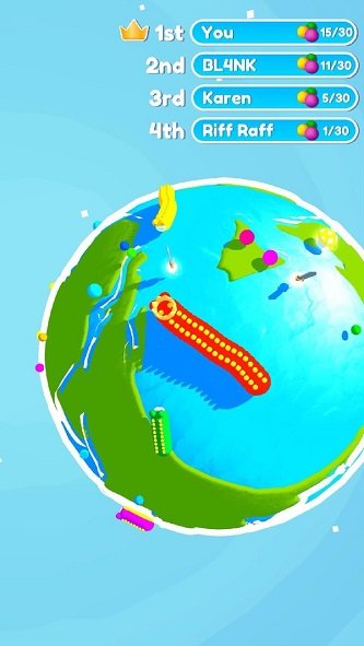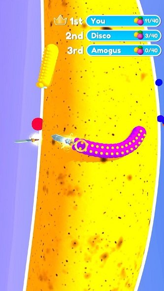 不要让自己过分聪明-击中敌人后,关卡必须重新开始。玩家可以在游戏中通过进食来增长自己的体型,当你的体型比别人大的时候你就可以吞掉别人,反之如果你比较小那么你还是小心翼翼的离那些比较大体型的远一些更安全。在运动场上移动并吃草莓,变得比对手更强大才能获胜。