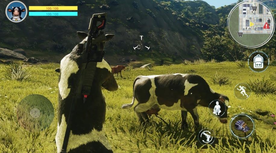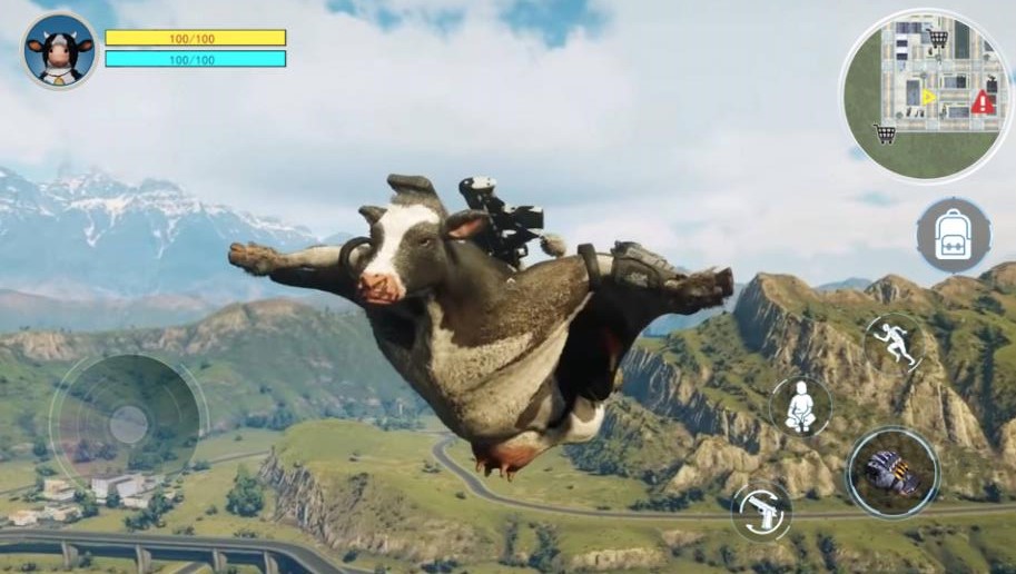 3、规模庞大的地图设计,操控奶牛在地图中自由探索,不断地进行射击。