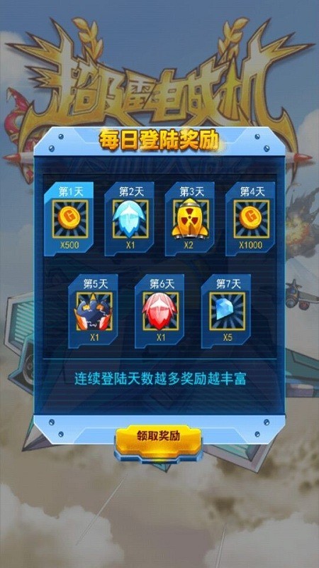 2、在游戏中玩家可以选择无数的强力战机,并且通过不断的通过领取奖励,以此来不断装备自己,提升自己的实力。