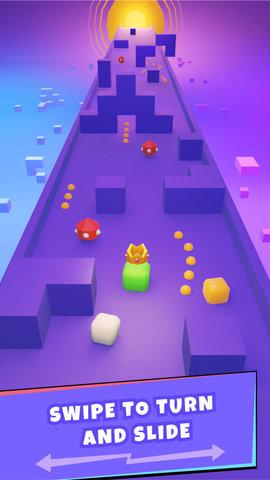 1、根据玩家的掌握程度,可适当选择不同难度的玩法,积极参与。2、通过操作,让你的魔方尽量吃金,避开障碍物,尽快冲线获胜。
