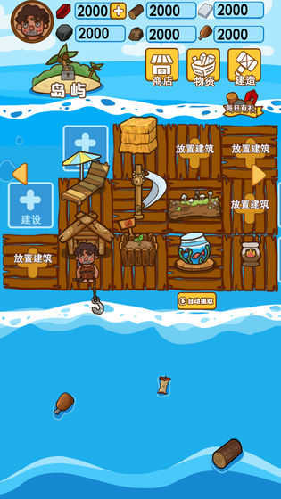 你的四周将会被海洋所包围;玩家需要利用钩子在海洋上抓取物品小心不要被鲨鱼吃掉收集资源在海上建造你的房子;游戏中玩家们可以通过打捞或者是探索海底来获得道具