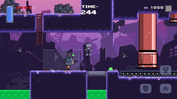 3、全靠操作的横版闯关界面,从地图中可以看到地雷以及其他反扒机械人所在的地方,硬闯还是躲过去由你来决定。