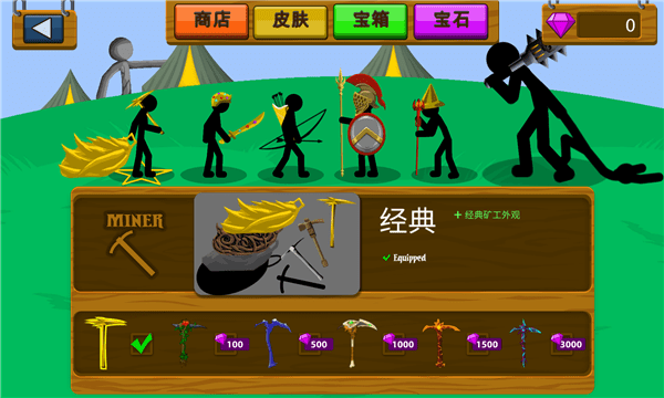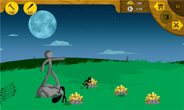 4、收集各种不同的性能的火柴人,组建战斗单位,开采黄金或是发起战争争夺领土;