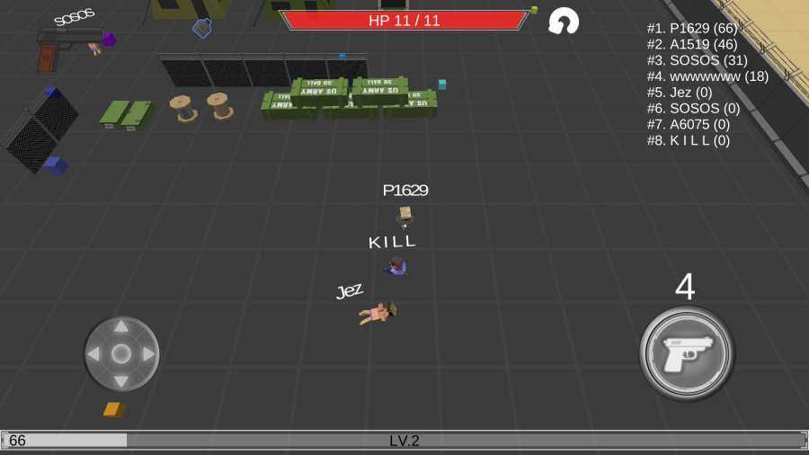 2、前用户的世界和无休止的战斗!杀死你的对手和调整你的性格和你的武器获得更多推杆许多敌人生存长身体。简约风格的手机射击类游戏,左下角是移动键,右下角是射击键,在不同的战场上来回战斗,除了手枪外还有各色战车或者装甲车之类的道具出现,简直好玩到爆表!
