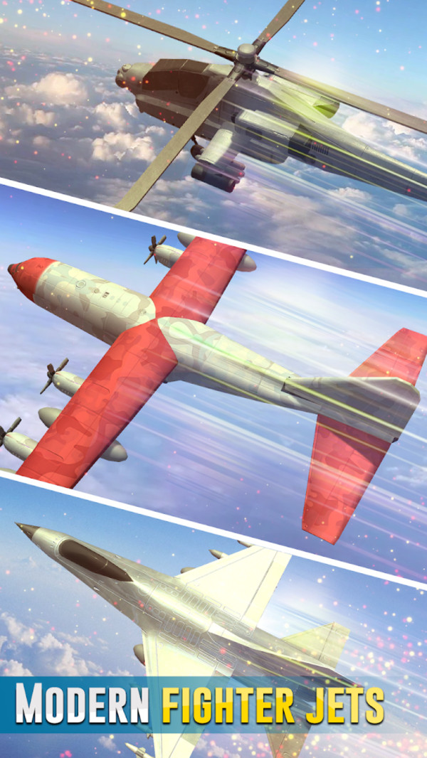 3、配备了火箭筒武器和精确的射击战斗,一场可怕的天空冲突战正在等待着您。