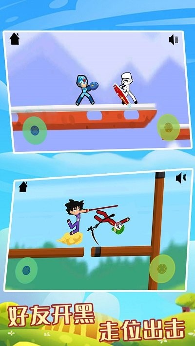3、采用与众不同的Q版形象,在火柴人互殴的同时,动作技能和场景设计也赋予了游戏精彩的视觉效果。